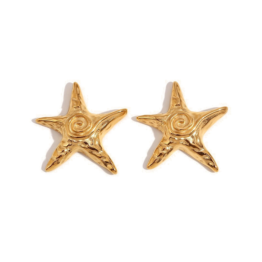 Ατσάλινα Μεγάλα Σκουλαρίκια Καρφωτά Αστερίας Χρυσό Χρώμα