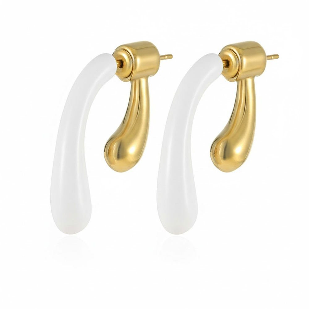 Μοντέρνα ατσάλινα σκουλαρίκια κρεμαστά σε δίχρωμο σχεδιασμό με λευκό και χρυσό στοιχείο που δημιουργεί εντυπωσιακή αντίθεση και κομψή αισθητική. Το καμπύλο, minimal σχήμα τους χαρίζει δυναμικό χαρακτήρα και αναδεικνύει κάθε εμφάνιση, από καθημερινό έως βραδινό look. Κατασκευασμένα από ανοξείδωτο ατσάλι για ανθεκτικότητα και σταθερή εφαρμογή, έχουν μήκος 3cm και αποτελούν ιδανική επιλογή για όσες αγαπούν τα σύγχρονα statement κοσμήματα.