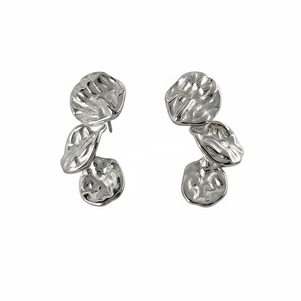 Εντυπωσιακά σκουλαρίκια από ανοξείδωτο ατσάλι με σφυρήλατες, οργανικές λεπτομέρειες που δημιουργούν ένα καλλιτεχνικό και σύγχρονο αποτέλεσμα. Ο ανάγλυφος σχεδιασμός τους χαρίζει ιδιαίτερη υφή και δυναμικό χαρακτήρα, ενώ το μήκος 3.5 cm τα καθιστά ιδανικά για statement εμφανίσεις χωρίς υπερβολή. Φοριούνται άνετα και συνδυάζονται εύκολα με minimal ή elegant looks, προσθέτοντας μοναδικό στυλ σε κάθε εμφάνιση.