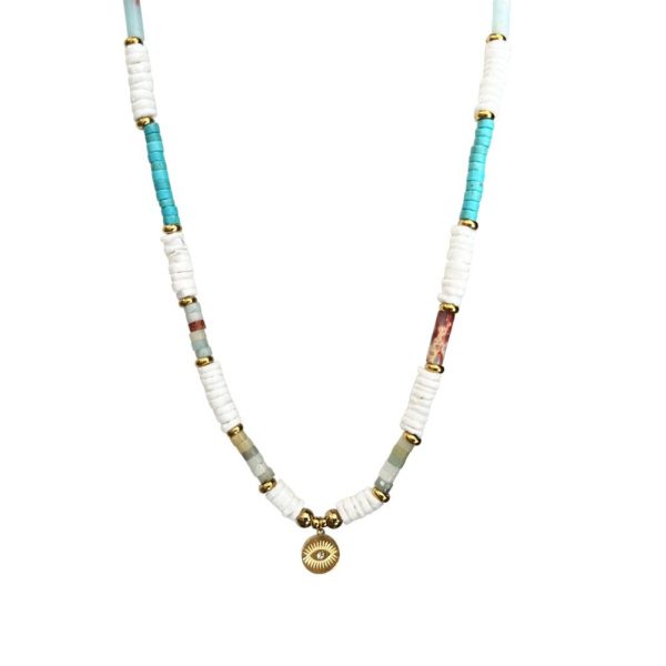 Κολιέ από ατσάλι με χρωματιστά πετράδια, ιδανικό για κάθε περίσταση & κάθε ώρα της ημέρας. Διαθέτει αυξομείωση και μπορείτε να το προσαρμόσετε στο ύψος που επιθυμείτε. Μήκος Αλυσίδας: 43 εκ. Προέκταση: 5 εκ.