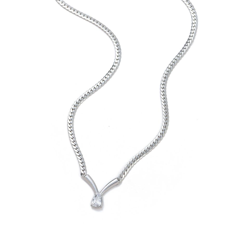 Ατσάλινο Κολιέ με Δάκρυ Ζιργκόν