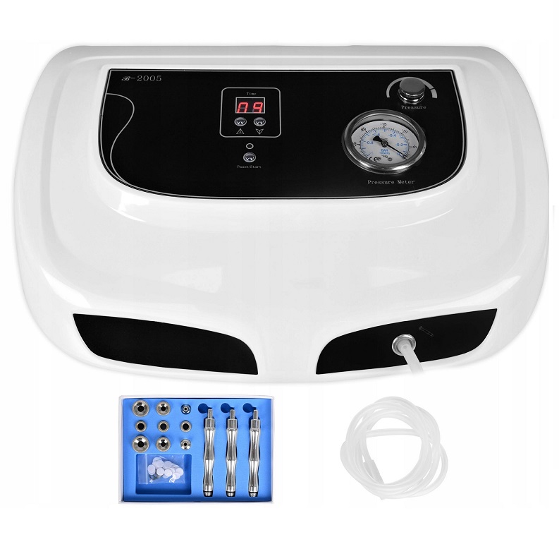 Επαγγελματική συσκευή αισθητικής Δερμοαπόξεσης με Διαμάντι Diamond Microdermabrasion B-2005 Επαγγελματική συσκευή αισθητικής για θεραπείες μικροδερμοαπόξεσης, ιδανική για επαγγελματίες που θέλουν να επιτύχουν το καλύτερο δυνατό αποτέλεσμα σε σύντομο χρονικό διάστημα. Η υπηρεσία μικροδερμοαπόξεσης διαμαντιών περιλαμβάνει μηχανική τριβή νεκρού δέρματος με διαμάντια ενσωματωμένα στην κεφαλή της συσκευής. Η συσκευή θα βοηθήσει στον καθαρισμό του λιπαρού και σμηγματορροϊκού δέρματος. Η συσκευή είναι εύκολη στη χρήση, γεγονός που του επιτρέπει να χρησιμοποιείται ακόμη και από αρχάριους κοσμητολόγους και αισθητικούς. Δράση: