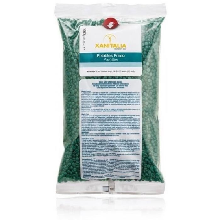 Εξαιρετικής ποιότητας κερί σε παστίλιες για κεριέρες σε βάζο. Η ποιότητα κεριού της XANITALIA θεωρείται η κορυφαία στον κόσμο. Το πράσινο κερί χλωροφύλλης προορίζεται για περιπτώσεις ευαίσθητων δερμάτων, αποτριχώσεις ποδιών, χεριών. Οδηγίες Χρήσης 1. Καθαρίστε με επιμέλεια την επιδερμίδα ώστε να μην υπάρχει λιπαρότητα. 2. Τοποθετήστε την ποσότητα από κόκκους που χρειάζεστε στην κεριέρα ή σε μεταλλικό δοχείο. 3. Λιώστε το κερί τελείως. Αφήστε το να κρυώσει λίγο ώστε να έρθει σε θερμοκρασία χρήσης. Δοκιμάστε την θερμοκρασία του πριν την εφαρμογή. 4. Χρησιμοποιώντας μία σπάτουλα τοποθετήστε το λιωμένο κερί (σε θερμοκρασία χρήσης) προς την κατεύθυνση των τριχών. 5. Περιμένετε 10-20 δευτερόλεπτα να κρυώσει. Μόλις σκληρύνει τραβήξτε το κερί προς την αντίθετη κατεύθυνση