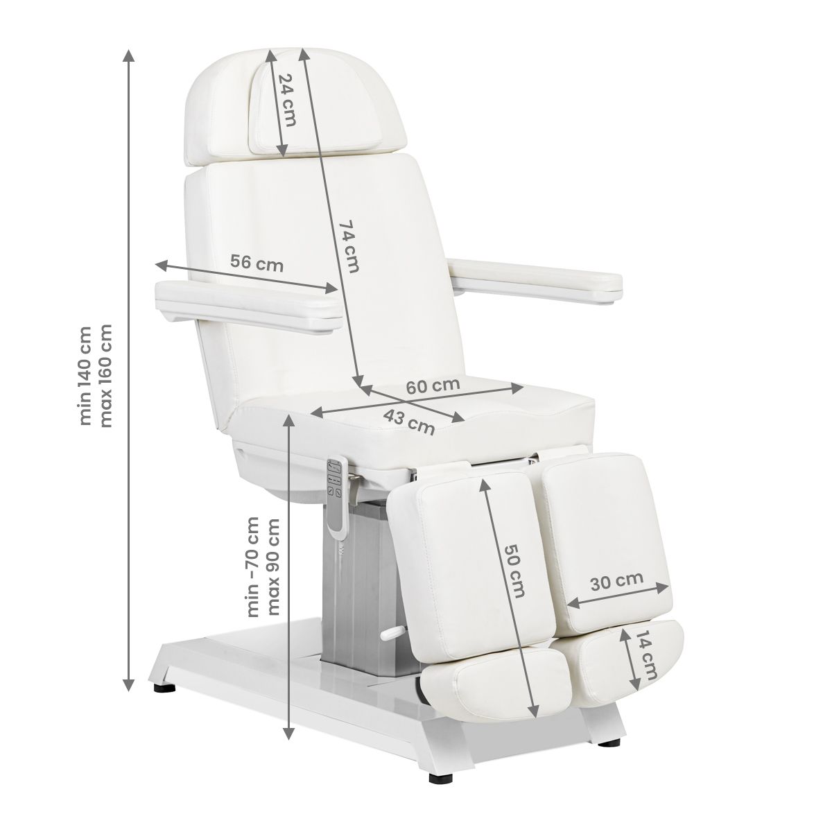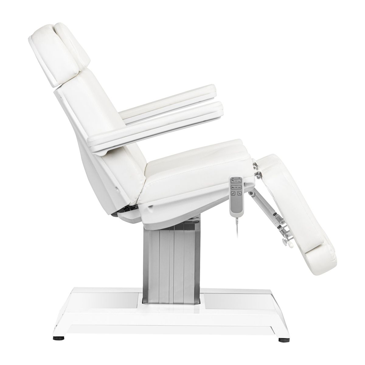 Η επαγγελματική ηλεκτρική καρέκλα EXPERT PODO είναι ιδανική για ινστιτούτα αισθητικής και σαλόνια SPA. Χάρη στα ανεξάρτητα μοτέρ, σας επιτρέπει να ρυθμίζετε την καρέκλα σε 3 επίπεδα χρησιμοποιώντας το τηλεχειριστήριο, δίνοντάς σας την ευκαιρία να κάνετε θεραπείες για το πρόσωπο, το σώμα και τα πόδια. Χρησιμοποιώντας το τηλεχειριστήριο, μπορείτε να ρυθμίσετε επίσης το ύψος της καρέκλας, την κλίση της πλάτης αλλά και το κάθισμα στη θέση της βάσης. Τα υποπόδια ρυθμίζονται ανεξάρτητα . Μια επιπλέον, ενδιαφέρουσα λειτουργία είναι ο πολύχρωμος οπίσθιος φωτισμός της βάσης της πολυθρόνας. Παρακαλούμε πριν την παραγγελία με χρεωστική ή πιστωτική κάρτα,  καλέστε μας στο 2310223523  για να ελέγξουμε: α) την διαθεσιμότητα του  είδους στις αποθήκες μας ή στις αποθήκες των προμηθευτών μας και β) για να σας ενημερώσουμε για την ημερομηνία παράδοσης σε περίπτωση που το είδος δεν είναι διαθέσιμο στις αποθήκες μας. Για όλες τις  παραγγελίες που αποστέλλονται με μεταφορική εταιρία λόγω όγκου και βάρους  και αφορούν εξοπλισμό  γίνεται προεξόφληση της παραγγελίας με κατάθεση σε τραπεζικό λογαριασμό ή με πιστωτική κάρτα. Τα μεταφορικά του συγκεκριμένου προϊόντος επιβαρύνουν τον πελάτη. Η εταιρία ΒΒΑΥ ΜΟΝΟΠΡΟΣΩΠΗ ΙΚΕ στο συγκεκριμένο είδος επιβαρύνεται με την μεταφορά του είδους στο πρακτορείο της επιλογής σας το Ν. Θεσσαλονίκης