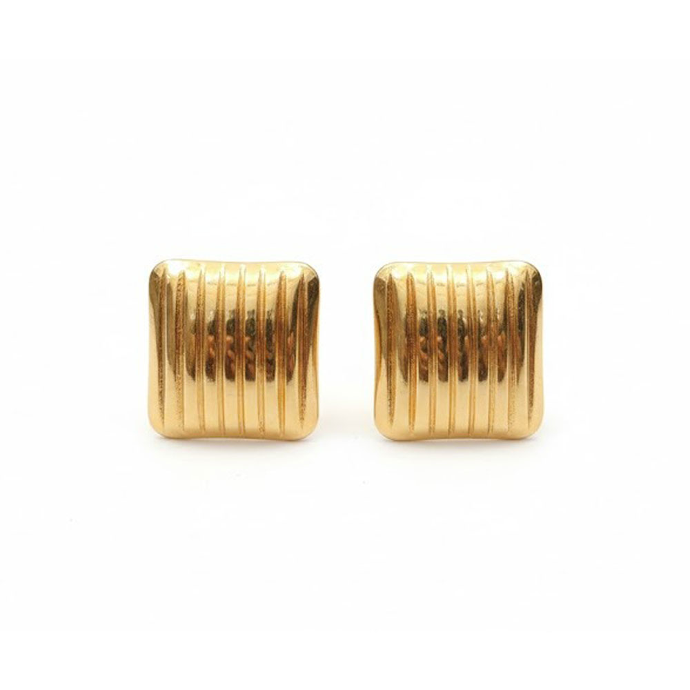 Τετράγωνα Ριγέ Ατσάλινα Σκουλαρίκια Χρυσό Χρώμα