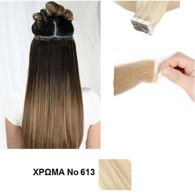 • TAPE EXTENSION. • Φυσική τρίχα. • Εύκολη εφαρμογή με tapes. • Μήκος: 50-55 εκατοστά. • Βάρος τούφας: 2,5 γρ. • 10 τούφες σε κάθε συσκευασία.